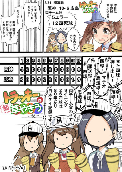 本日 2017 04 01 の阪神vs広島戦を観ていた艦娘たちの様子です ご確認ください 水田ケンジ さんのイラスト ニコニコ静画 イラスト