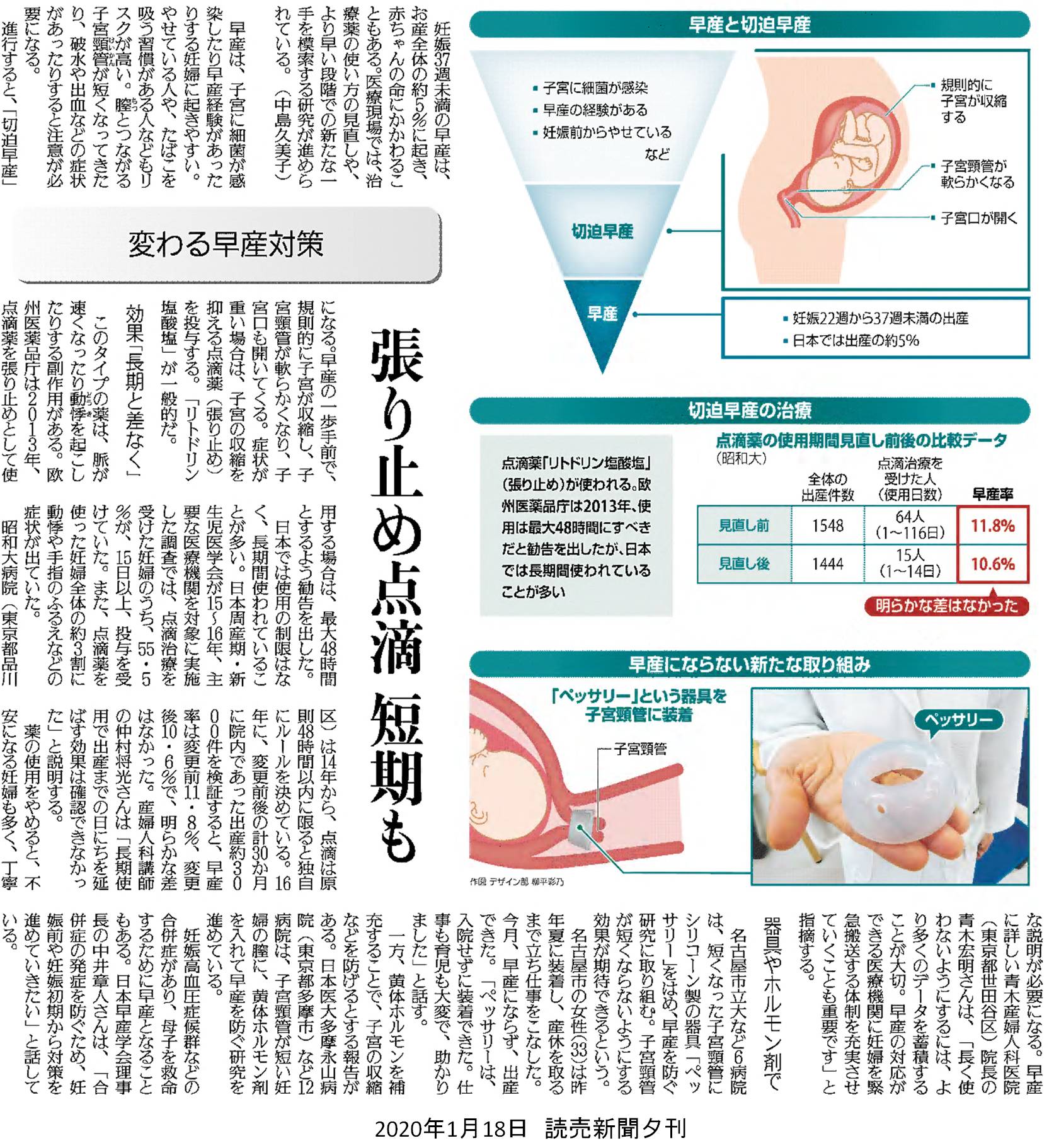室月淳jun Murotsuki 集英社新書 出生前診断の現場から On Twitter 切迫早産妊婦にたいするリトドリンの48時間投与 ショートトコライシス と早産予防ペッサリーの使用についての読売の紹介記事です ほとんどの切迫早産妊婦には長期入院 安静臥床管理は不要です