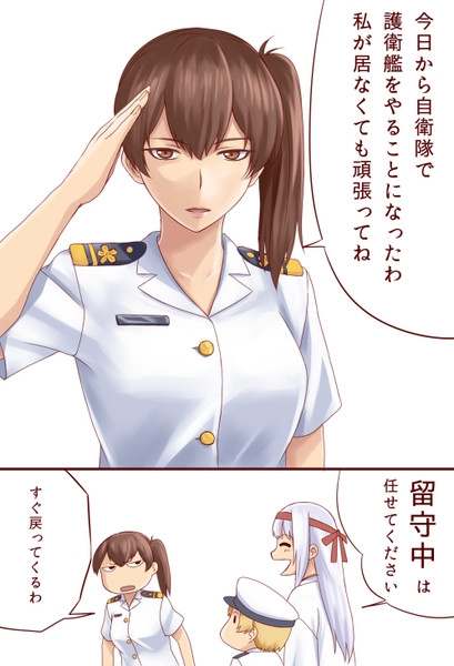 艦これ 開発 運営 On Twitter 加賀 さんのデザインを担当したしばふさんより 昨日進水した護衛艦 かが 進水記念緊急描きおろしが到着しました 来月実施予定の次回メンテナンスに伴うアップデートでは 加賀岬アレンジの新インスト母港bgm も実装予定です