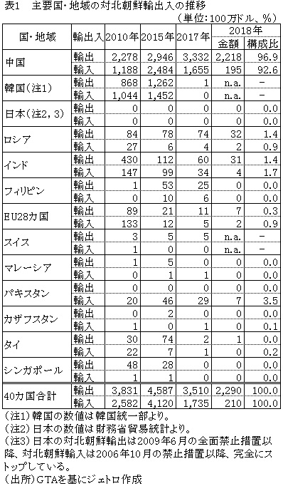 主要国 地域の対北朝鮮貿易の動向 2018年は中国の輸入が大幅減 韓国 北朝鮮 中国 ビジネス短信 ジェトロ