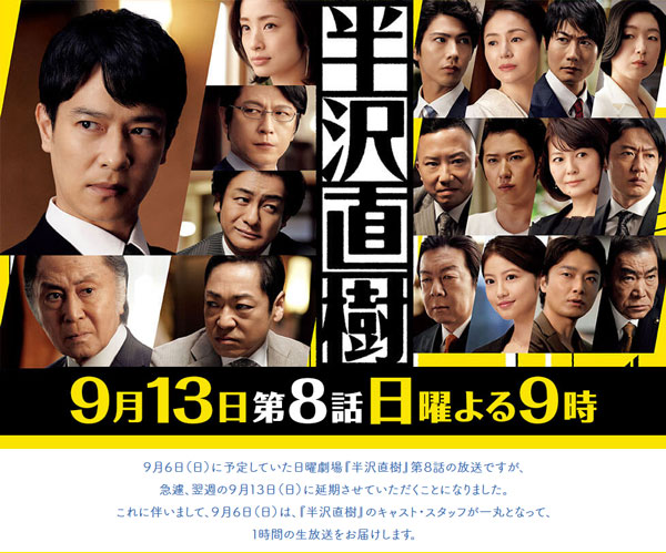 9月6日予定の 半沢直樹 第8話の放送が1週間延期 6日にはキャスト スタッフが一丸となった生放送 ネタとぴ