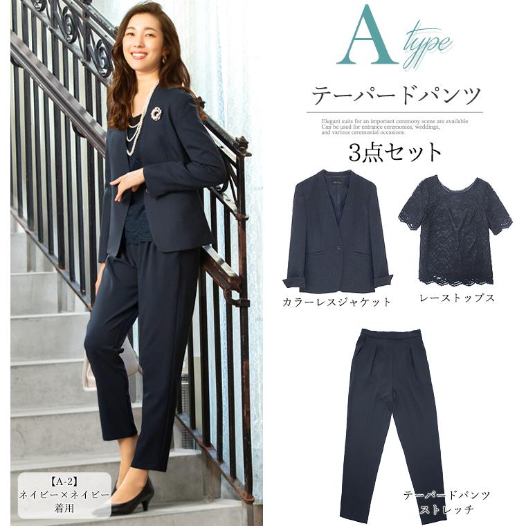 ママスーツ レディース 入学式 服装 母親 入園 卒業式 卒園 七五三 セレモニー フォーマル パンツ 3点セット 大きいサイズ あすつく 試着チケット対象 Addrouge 通販 Paypayモール
