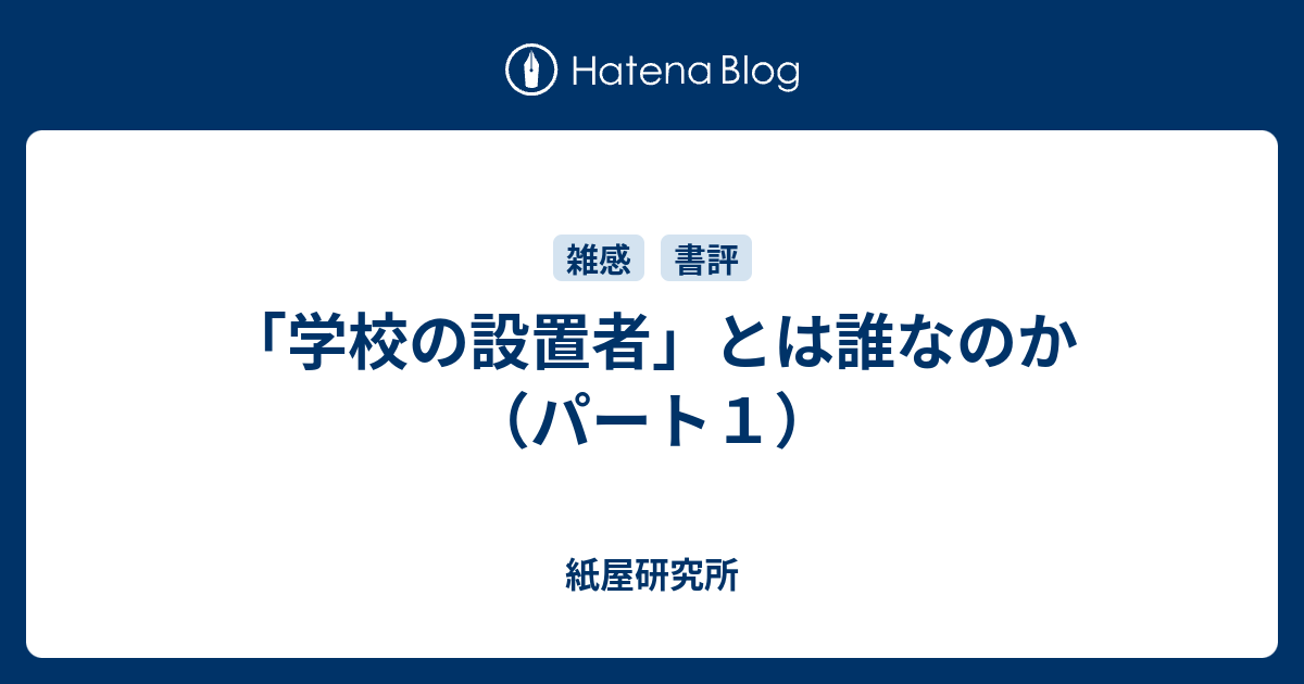 学校の設置者 とは誰なのか パート1 紙屋研究所