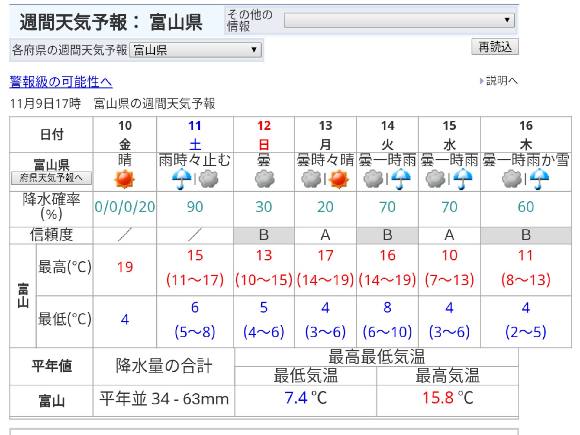 富山 圏域関連情報 情報提供随時受付 على تويتر 富山県内気象情報 気象庁が17時に発表した最新の週間天気予報によると 15日 水 以降は最高気温が10度前後の予報 また 北陸地方には 低温と大雪に関する異常天候早期警戒情報 も発表 山沿いを中心に