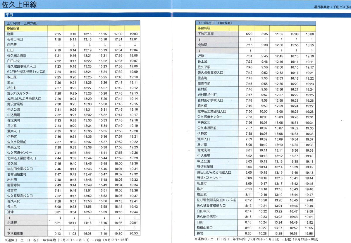 長野県佐久市 公式 V Twitter Jr東日本によると10月15日現在 Jr小海線 は運行を見合わせており バス代行運行は行わないとのことです 既存の市内バス路線として 以下の路線がありますので 改めて掲載します 佐久上田線 臼田 野沢 中込 岩村田 佐久平