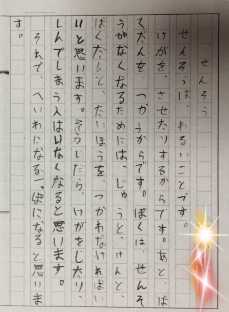 せんそう 小学2年生 男の子 国連ユネスコ本部から世界へ 子ども達の平和メッセージを発信 maki 2016 08 13 投稿 クラウドファンディング Readyfor レディーフォー