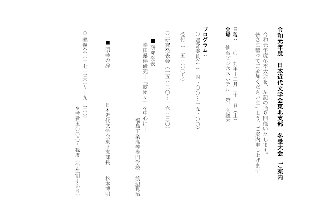 武蔵野書院のブログ 2018年度春季大会のご案内 日本近代文学会運営委員会