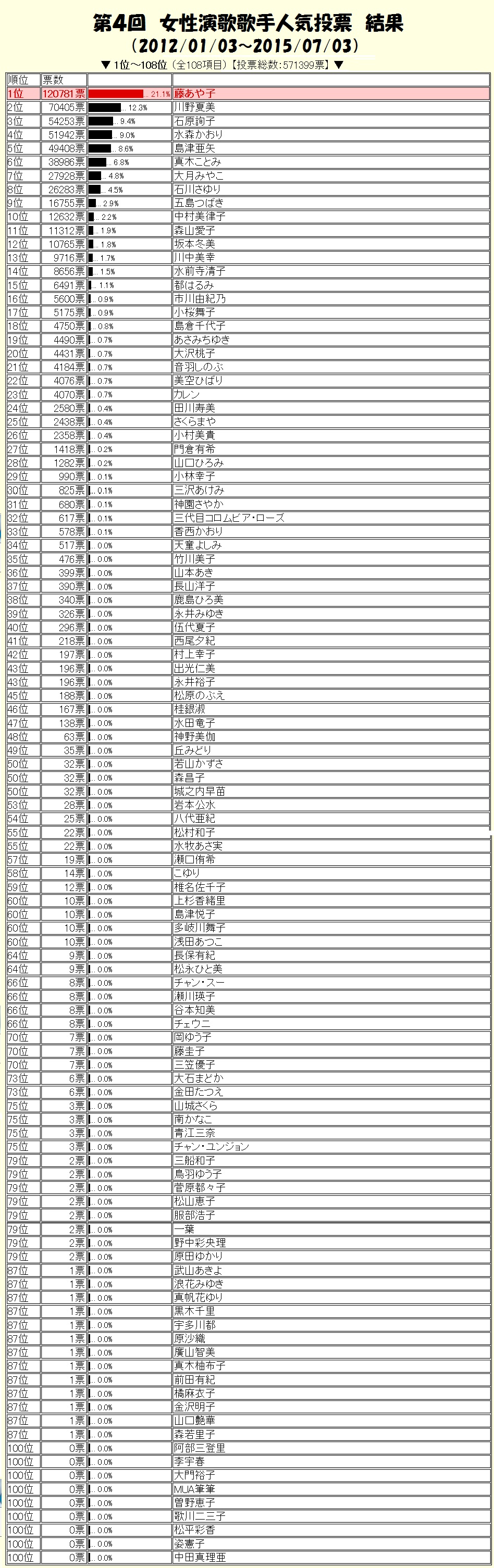 投票結果 1 61位 日本の女性アーティスト歌唱力ランキング 1番歌が上手い女性歌手は みんなのランキング