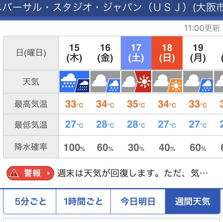 Usjの天気を知りたい 明日 週間 10日間の天気予報をリアルタイムで確認 気になった話題